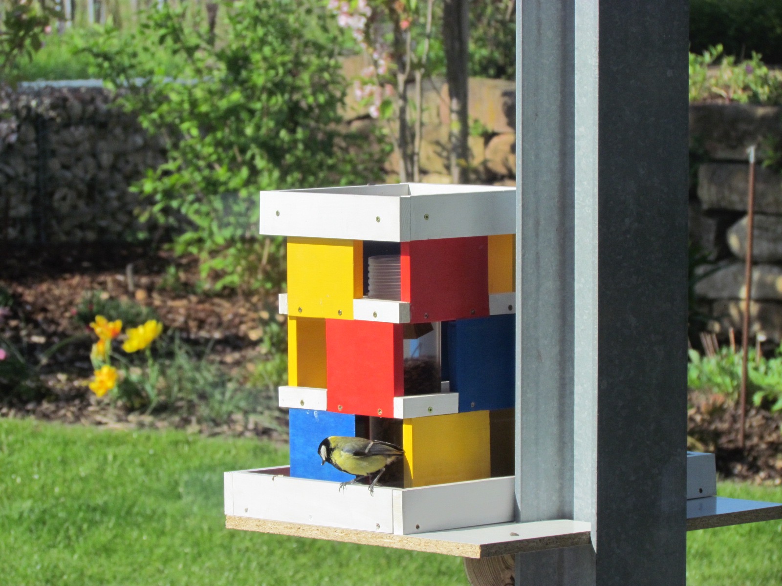 | als ein "konstruktives" vogelhaus mit den farben von piet mondrian zu bauen (die meise fand es prima ...!) | ||||||